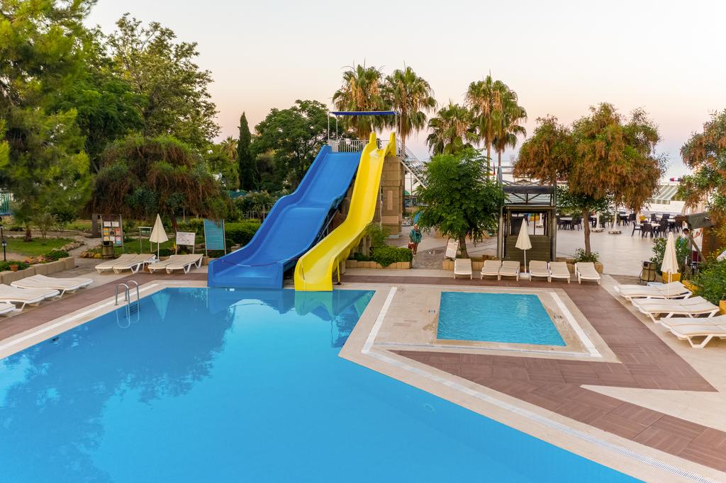 Sadržaj hotela: restoran, snek bar, bar pored bazena, lobi bar, snek bar na plaži, disco bar, otvoreni bazeni za odrasle i decu, 2 tobogana, kompjuterske igre, šoping centar, rent-a-car, Wi Fi internet, odbojka na plaži, stoni tenis, fitnes, teniski teren, tursko kupatilo, sauna, animacija, sportske aktivnosti tokom dana, mini klub za decu od 4 do 12 godina, sportovi na vodi, bilijar, masaža, Spa centar.