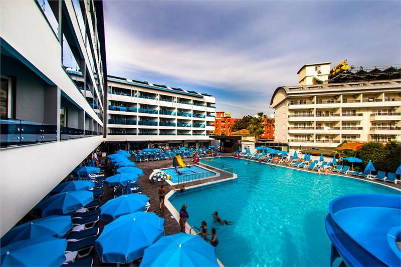 Recepcija, glavni restoran, a la carte restoran, lobi bar, bar na krovu, bar pored bazena, bar na plaži, bazen za odrasle, bazen za decu, mini klub za decu, dečije igralište, mini disko, jutarnja gimnastika, step aerobik, vežbe u vodi, odbojka na plaži, pikado, stoni tenis, fitnes centar, tursko kupatilo, sauna, besplatan Wi-Fi internet (u zajedničkim prostorijama hotela), parking.