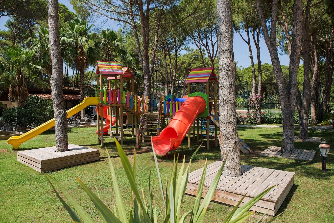 Glavni restoran (unutrašnji dio i terasa), 4 a la carte restorana (riblji, azijski, italijanski i gril-rezervacija se plaća), 7 barova (jedan radi 24h), 2 teniska terena, 3 fudbalska terena, 5 otvorenih bazena, vodeni park za odrasle (8 tobogana), dečiji bazen, vodeni park za decu (6 tobogana), mini zoo vrt, tursko kupatilo, sauna, fitness centar, kino sala, diskoteka, stoni tenis, odbojka na plaži, mini fudbal, mini golf, wellness centar, rent-a-car, WiFi na cijeloj teritoriji hotela, suvenirnica, mini klub (4-7 god.), junior klub (7-13 god.), igraonice, dečiji meni. Plaća se: video igre, bilijar, motorni sportovi na vodi, najam teniskih rekvizita i osvetljenje teniskih terena, masaže, jacuzzi, usluge pranja i hemijskog čišćenja veša, usluge doktora i dadilje.