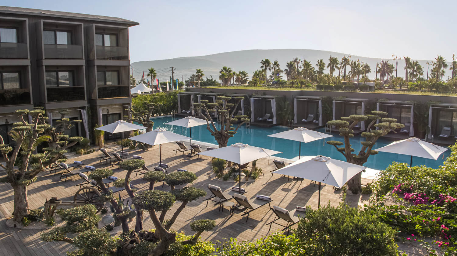Biblos Resort Alacati 5* , Česme – udaljen oko 7 km od centra Alačatia i 20 km od centra Češmea, na samoj obali mora. Udaljen je od aerodroma u Izmiru 91 km.Izgrađen je 2018. godine i zauzima površinu od 25.000 m2. Smešten je na sopstvenoj peščanoj plaži. Suncobrani, ležaljke i madraci su besplatni za goste hotela.