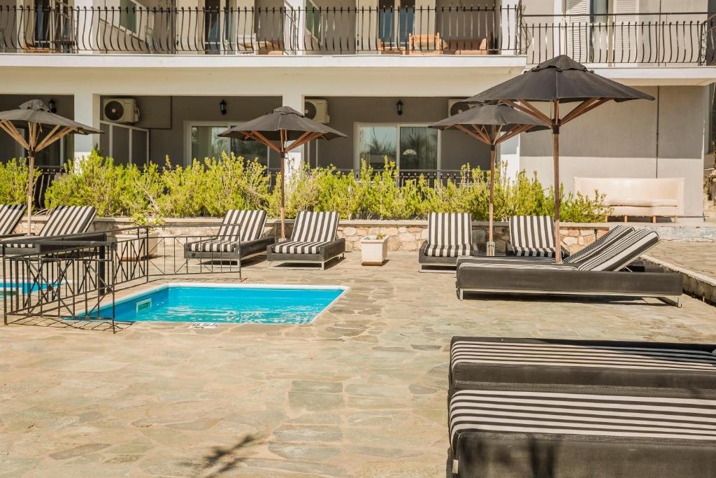 Ovaj objekat udaljen je oko 2 km od plaže Avitos i 1,2 km od plaže Ames (Ammes). Sobe poseduju balkon.