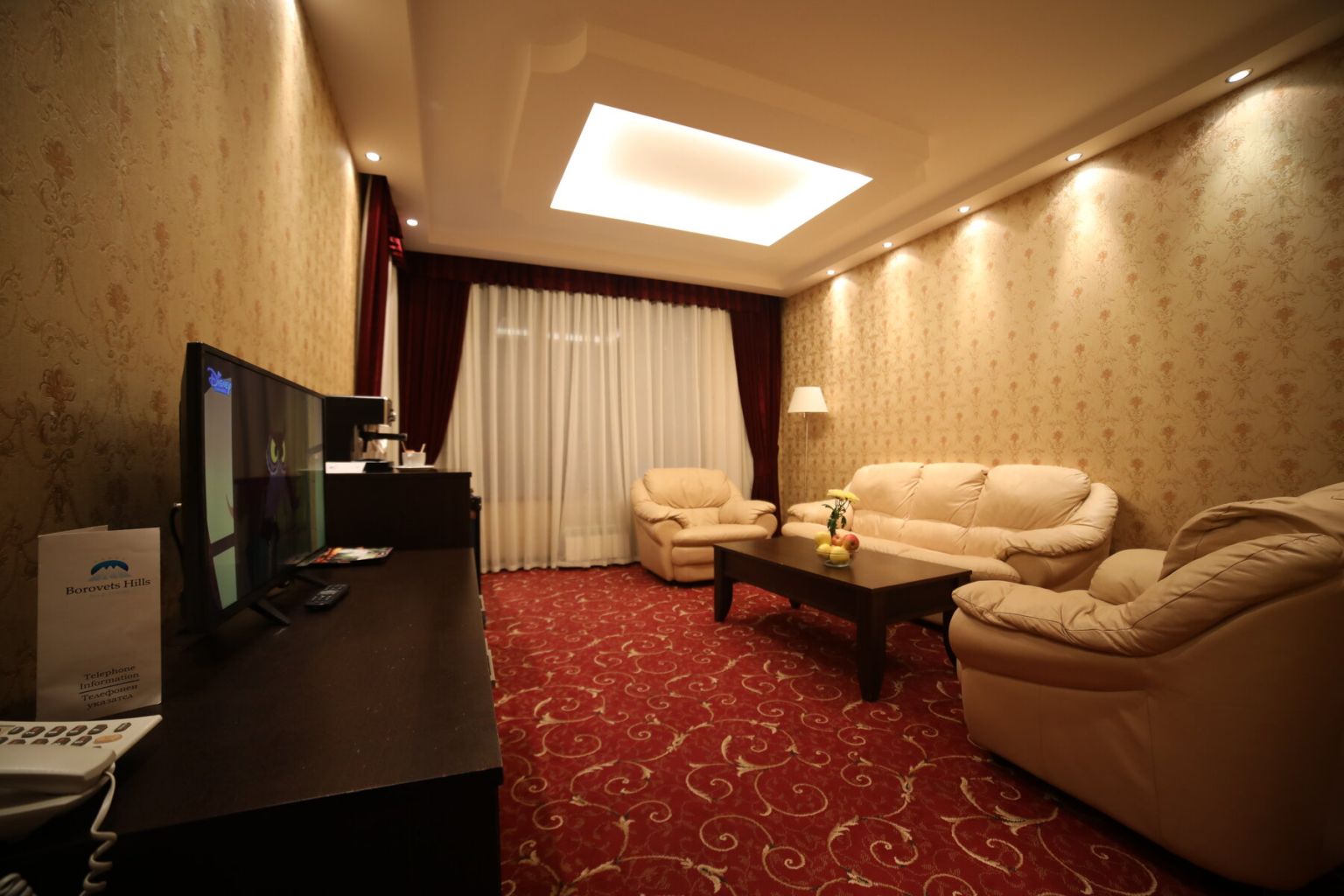 Smeštaj: Borovets Hills hotel se sastoji iz glavne zgrade i aneks zgrade, koje su povezane, tako da gosti aneks zgrade mogu da koriste sadržaje hotela u glavnoj zgradi. Sobe u aneks zgradi su nešto slabijeg kvaliteta u odnosu na sobe u glavnoj zgradi. Kompleks raspolaže sa 48 standardnih soba, 6 studija, 6 jednosobnih apartmana, 3 dvosobna apartmana. Sve sobe imaju mini bar, kablovsku TV, sef, telefon, internet, fen, kupatilo/wc. Pogled iz soba se pruža na okolnu planinu.