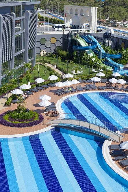 Sadržaj hotela: Recepcija,lobi,glavni restoran, a la carte restorani,barovi,otvoren i zatvoren bazen za odrasle i decu,tobogani,fitness centar,tursko kupatilo,sauna,parno kupatilo,odbojka na plaži,stoni tenis,mini golf,mini club za decu