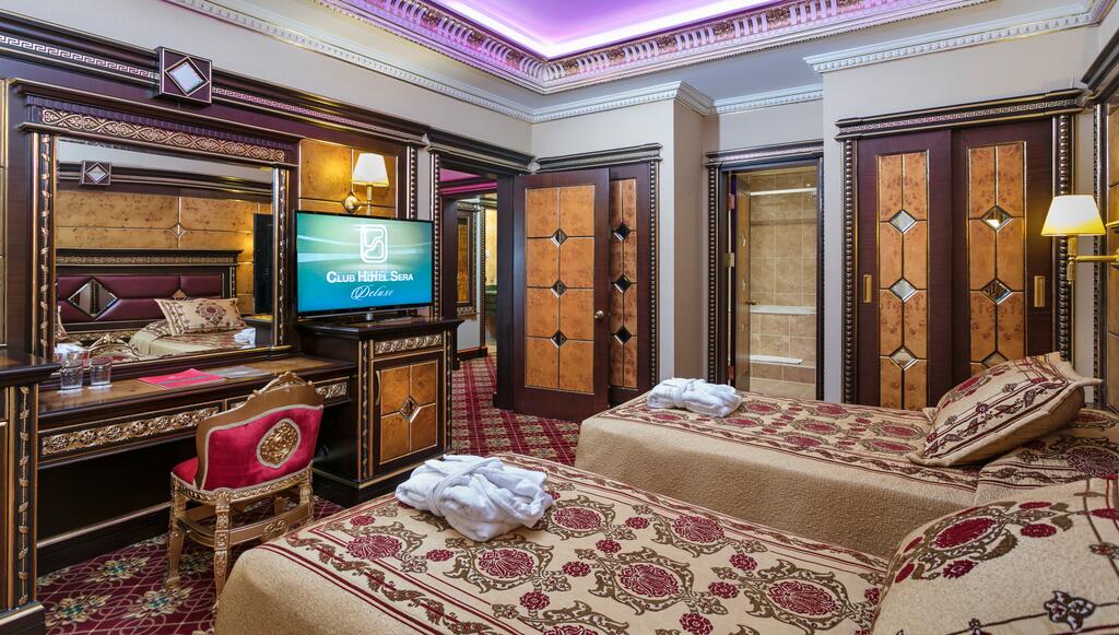 Sadržaj hotela: Club Hotel Sera u svom sastavu poseduje otvoreni i zatvoreni bazeni za odrasle i decu, tobogani, teniski tereni, fitnes, sauna, tursko kupatilo, košarka, odbojka na plaži su besplatni, tokom dana zabavni program, a uveče večernji šou program, mini klub za decu od 04 do 12 godina u hotelu. Prema pravilima hotela dodatno se doplaćuju: masaža, solarijum, sportovi na vodi, kuglanje, bilijar i kompjuterske igre, telefon, fax, internet, usluga lekara, čuvanje dece, usluga pranja veša, hemijsko čišćenje, šoping centar, frizer, rent-a-car. Privatna plaža hotela je peščana i sa platformom. Hotel ima glavni restoran Royal na bazi otvorenog bufea - samoposluživanje, izbor više jela (švedski sto), snek bar pored bazena i na plaži, barovi u okviru hotelskog kompleksa, disko bar, A'la Carte restoran.