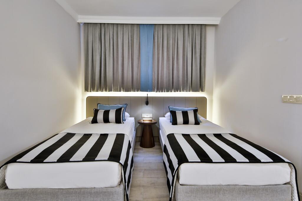 Smeštaj: hotel raspolaže sa ukupno 521 smeštajnom jedinicom u bungalovima na tri sprata. Svaka soba u hotelu poseduje SAT LCD TV i muzički kanali, split klimu, direktnu telefonsku liniju, mini bar (bezalkoholna pića se dopunjuju svakodnevno), sef, kupatilo sa kadom ili tuš kabinom, fen za kosu, balkon ili terasu.