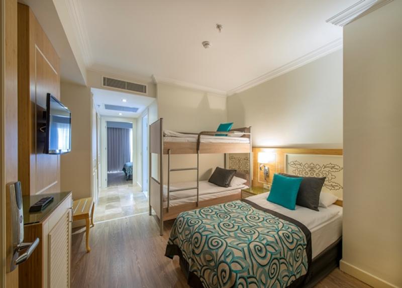 Hotel ima ukupno 1023 sobe, smeštene u glavnoj zgradi ( 9 blokova od 5 spratova i 4 bloka od 3 sprata) i 2 Anex bloka ( blokovi od 5 spratova). Standardne sobe ( 27m2, 1 spavaća soba sa francuskim krevetom + 1 single krevet, 1 kupatilo, max. kapacitet 3 pax), Porodična soba ROH ( 33m2, 2 spavaće sobe sa vratima između, francuski krevet u jednoj spavaćoj sobi i kreveti na sprat ili 2 single kreveta, 1 kupatilo, max. kapacitet 3 + 2 pax), Honeymoon apartmani ( 23m2, sa bočnim pogledom na more, 1 spavaća soba, 1 kupatilo, Jacuzzi na širokoj terasi sa ležaljkom), Junior Apartmani ( 50m2, bočni pogled na more, 1 spavaća soba, 1 dnevna soba, 1 kupatilo, velika terasa sa Jacuzzi, max. kapacitet 2 pax). Sve sobe su sa privatnim kupatilom sa tuš kabinom, fenom za kosu, papučama, centralnom klimom koja radi u skladu sa vremenskim uslovima, telefon, mini bar ( gazirana pića – dopunjavaju se svaki dan), set za kafu i čaj, sef, laminatski ili keramički pod, TV sa satelitskim i muzičkim kanalima, internet i balkon.