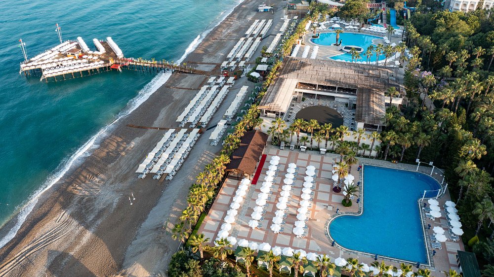 Recepcija, lobi, glavni restoran, a la carte restorani, barovi, bazen za odrasle i decu sa toboganom, zatvoren bazen, aqua park, relax bazen, luna park, mini club, mini disco, igralište, fitnes centar, stoni tenis, pikado, tursko kupatilo, sauna, parno kupatilo, Shuttle bus do Alanje, Manavgata i Sidea.