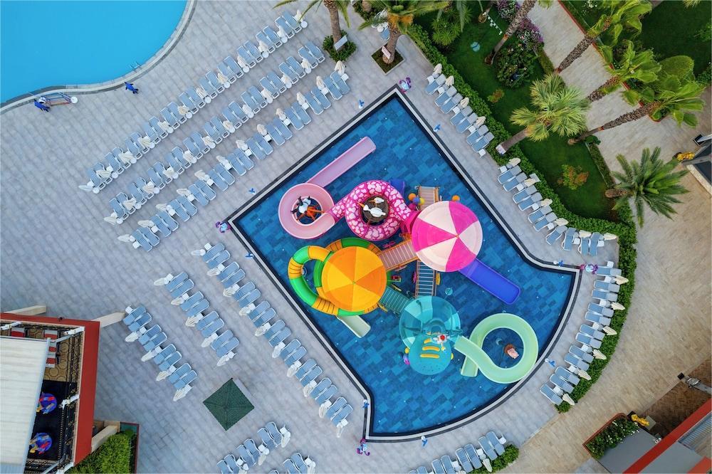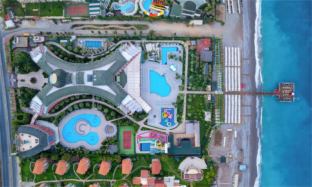 Delphin Deluxe hotel 5* se nalazi na 90 kilometara od aerodroma u Antaliji, 30 km od Alanje, a na samoj obali mora. Hotel je sagrađen 2001., a renoviran 2013. godine. Hotel se prostire na površini od oko 50.000 m2.