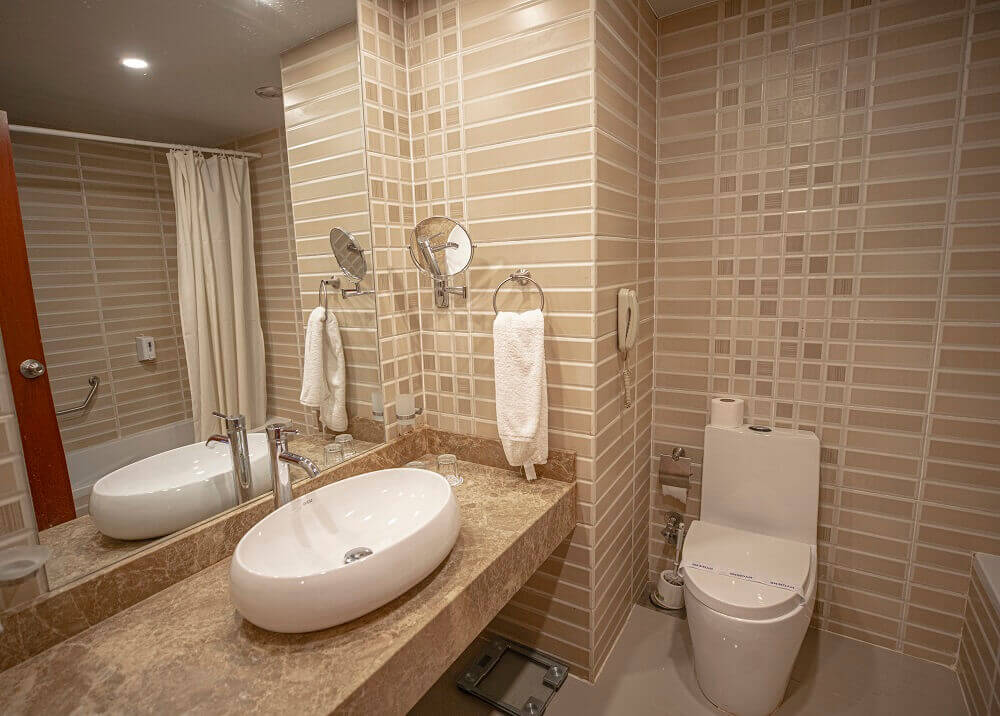 Smeštaj: Sve sobe imaju: TWC, klima uređaj, LCD TV sa satelitskim programom, sef, fen za kosu, mini bar( samo voda). Standardne sobe su moderne dvokrevetne sobe i sobe sa pomoćnim krevetom. Standardne sobe ne poseduju balkon/terasu već samo prozor od poda do plafona, dok deluxe sobe imaju balkon.