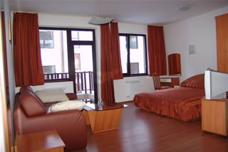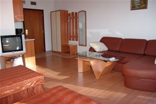- Jednosobni apartman za 2-4 osobe (2+2): spavaća soba sa francuskim krevetom i dnevni boravak sa sofom na razvlačenje, kuhinja, frižider, SAT TV, kupatilo sa tuš kabinom i balkon.