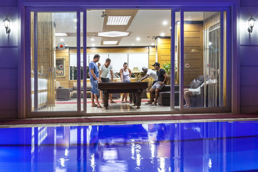 Sadržaj hotela: Restoran, lobi bar, snek bar, bar pored bazena, otvoreni bazen za decu i odrasle, usluga lekara, internet kafe, kompjuterske igre, rent-a-car, fitnes, stoni tenis, odbojka na plaži, mini klub za decu, igraonica, mini diskoteka u večernjim satima, tursko kupatilo, sauna, masaža, sportovi na vodi, bilijar.