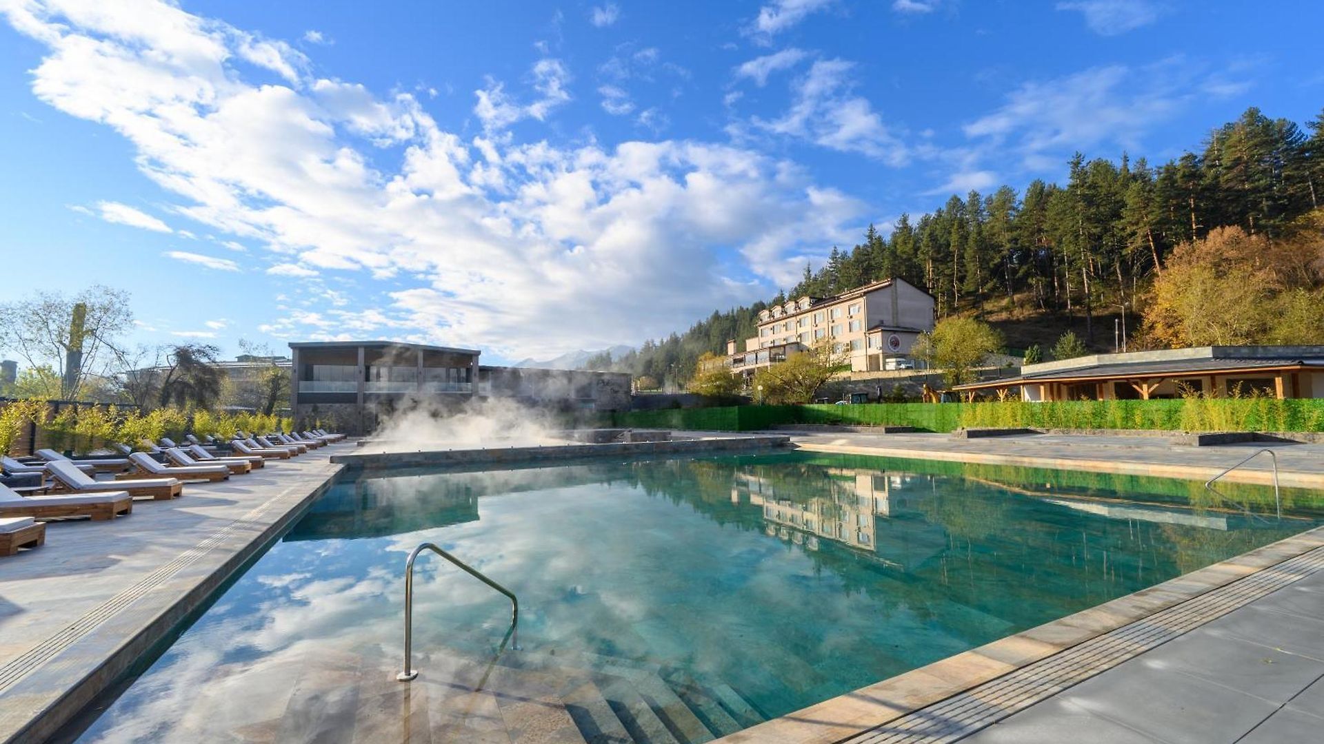 Lokacija: Grand Hotel Therme 5* je novootvoren i luksuzan hotelski kompleks, smešten u mestu Banja (Banya), poznatoj bugarskoj banji udaljenoj svega 5 km od ski centra Bansko i nekih 15-tak minuta vožnje od početne stanice gondole. Nalazi se u prelepom prirodnom okruženju sa pogledom na vrhove planine Pirin.