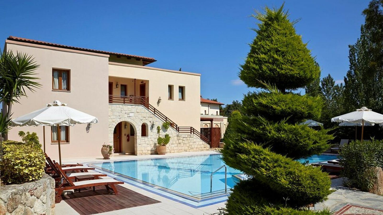 Maisonette Pool View - dva nivoa povezana stepeništem, sa pogledom na bazen, u donjem delu hotelskog kompleksa.