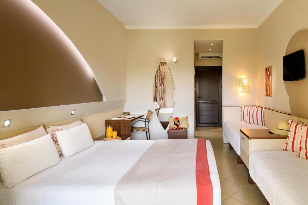 Sadržaj hotela: Sastoji se od glavne zgrade i bungalova. Delimično renoviran 2018. Hotel ima sopstvenu plažu, recepciju, restoran, tavernu na plaži, tri bara, dva bazena, dečiji bazen, lift, doktor na poziv, igralište i mini klub decu od 4 do 12 godina, čuvanje dece(na upit) mini market, terene za tenis (uz doplatu na licu mesta), stoni tenis, odbojka na plaži, mini golf i mini fudbal (uz doplatu na licu mesta), teretanu (u Spa centru), wi-fi Internet u javnim delovima hotela (besplatno), parking… Od ostalih aktivnosti, tu su različiti vodeni sportovi, animacija – zabavni programi, grčko veče – jednom nedeljno. Hotel je ujedno i jedan od najboljih SPA centara (uz doplatu na licu mesta) na Tasosu.