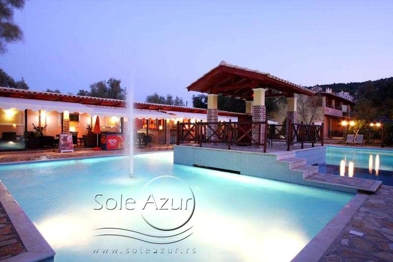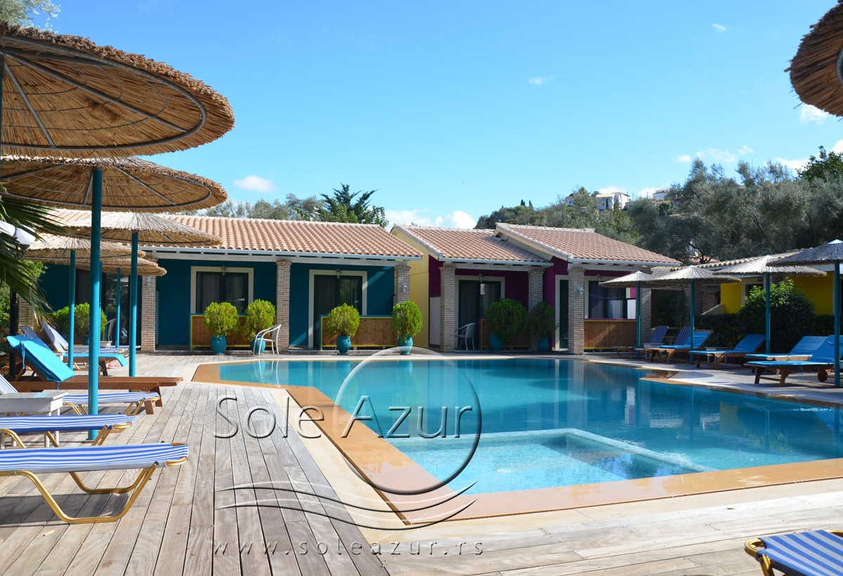 HOTEL VILLAGIO MAISTRO je kompleks koji se prostire na 12.000 m2 i nalazi se na Lefkadi, u glavnom gradu Lefkas u području poznatom po imenu Agios Ioannis. Prelep kompleks je udaljen od plaže Ag. Ioannis koja ima plavu zastavu na 600-700m, a od centra glavnog grada Lefkade oko 1500m. Ovaj prelepi kompleks u svom sastavu poseduje 6 zgrada za smeštaj gostiju. Od toga je 11 mezoneta, 5 bungalova i 30 apartmana, koji su okruženi bujnom vegetacijom, maslinovim drvećem i prelepim cvećem. U svom sastavu se takođe nalazi jedan bazen veličine 100 m2 i maksimalne dubine 2,30m, drugi BAZEN veličine 130 m2 i maksimalne dubine od 1,6m i dečiji bazen veličine 70 m2 i maksimalne dubine 0,5m. Pored bazena je i bar. Veliki restoran za doručak se nalazi pored bazena Poseduje veliki natkriveni parking, izvrsno dečije igralište koje u svom sastavu poseduje ljuljaške, klackalice, tobogane… Takođe postoji i teren za fudbal i košarku (jedan gol i jedan koš), kao i za stariju decu i odrasle, stolove za stoni tenis, bilijar i druge zabavne igre (KORIŠĆENJE SVEGA NAVEDENOG JE BESPLATNO). Takođe poseduje više mesta za pravljenje roštilja. Recepcija ovog kompleksa se nalazi na samom ulazu u kompleks. Odlična lokacija kompleksa Vam pruža da uz laganu šetnju stignete do plaže, kao i do samog srca grada. Jedna od najpopularnijih plaža na Lefkadi Katizma se nalazi na nešto više od 10km od kompleksa. Idealno mesto za sve tipove gostiju. Kako za parove, tako i za društvo i porodice sa decom.