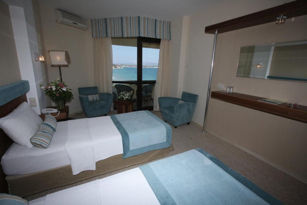 Hotelska zgrada ima 4 sprata i raspolaže sa 110 standardnih soba (max 3 osobe, 24m2). Svaka soba ima individualni klima uređaj, TV, fen, mini-bar (prazan, sokovi i pivo uz doplatu), sef, telefon, balkon ili terasu.