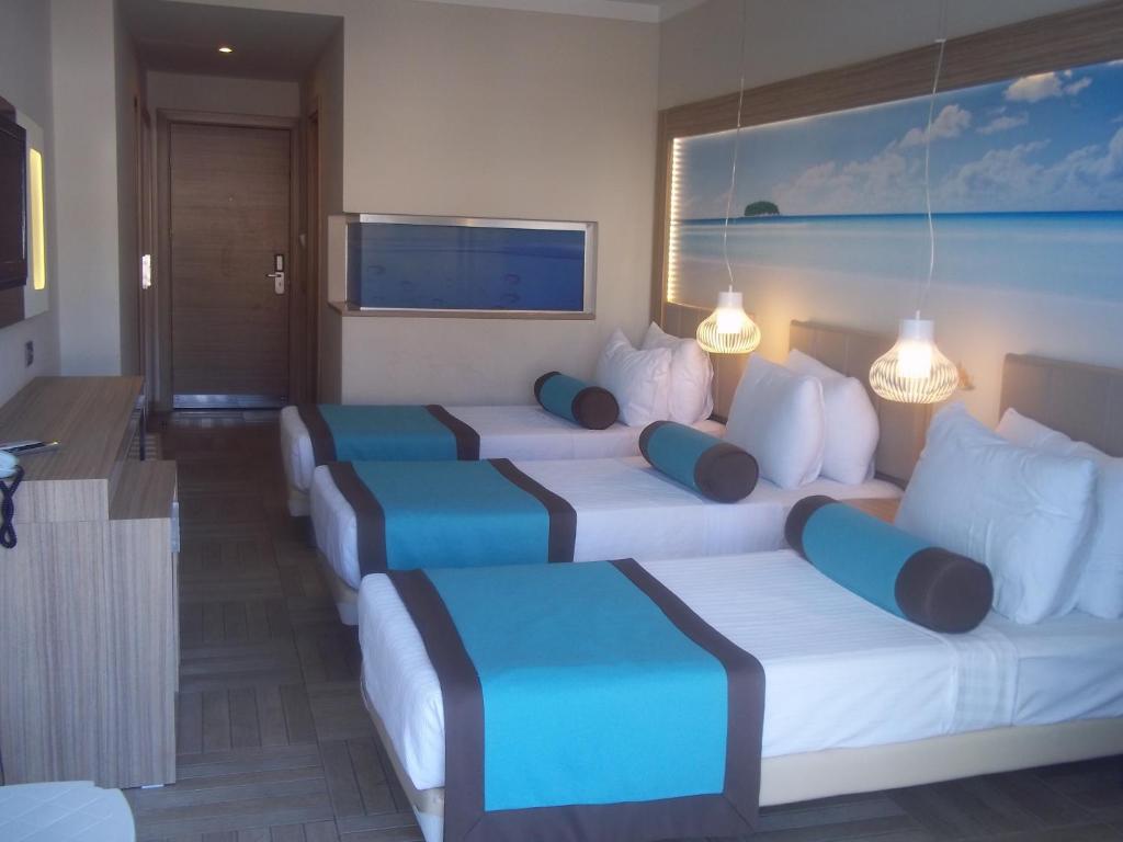 Hotel Blue Bay Platinum 5*, Marmaris ( Turska ). Ovaj objekat je udaljen 3 min hoda od plaže. Hotel Blue Bay Platinum se nalazi na 150 metara od plaže u Marmarisu i raspolaže modernim sobama sa balkonima. Nudi zatvorene i otvorene bazene, spa sadržaje, bežični internet i privatni deo plaže.