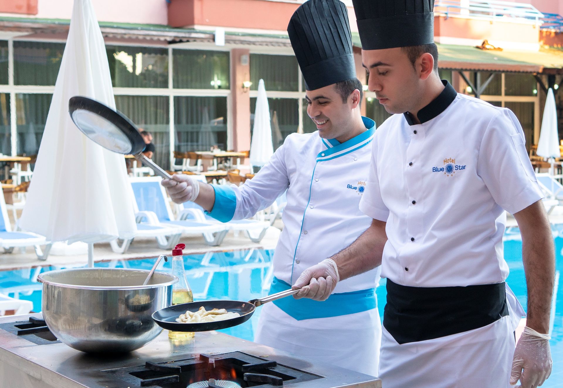 - U većini hotela doručak se služi na bazi švedskog stola, a ručak i večera – klasično usluživanje, u zavisnosti od hotela, izbor između dva ili tri menija (piće nije uključeno u cenu). Uglavnom je zastupljena internacionalna kuhinja