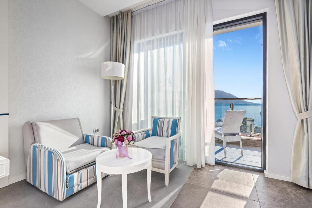sef, telefon, mini-bar (svakodnevna dopuna), fen, TV (LCD), balkon ili terasa. Kupatilo sa tuš kabinom, papuce i bade-mantili (u svakoj sobi). Pod: tepisi/kamene ploce. Čišćenje-svakodnevno promena posteljine u toku boravka, menjanje peškira-svakodnevno. Room service, besplatan Wi-Fi Internet.