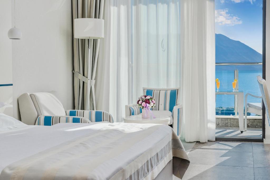 Dvokrevetna soba - Površina 25-35m2, francuski ležaj/ odvojeni kreveti, fotelja, balkon. Maksimalni kapacitet 2 odraslih + 1 adl/diete (fotelja na razvlačenje). Klima, sef, telefon, mini-bar (svakodnevna dopuna), fen, TV (LCD), balkon ili terasa. Kupatilo sa tuš kabinom, papuce i bade-mantili (u svakoj sobi). Pod: tepisi/kamene ploce. Čišćenje-svakodnevno promena posteljine u toku boravka, menjanje peškira-svakodnevno. Room service, besplatan Wi-Fi Internet.