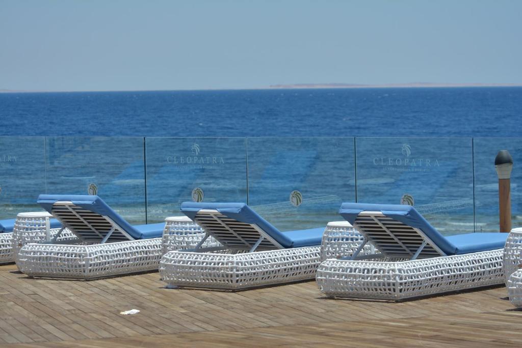 Lokacija: Lepo dizajniran, moderan hotel, okružen egzotičnom baštom površine 100 000m2, nalazi se u zalivu Nabq Bay, 18 km od centra Naama Bay i 7 km od aerodroma. Hotel Cleopatra Luxury Resort ima privatnu peščanu plažu dugu 200 m, sa ulazom u more preko pontona.