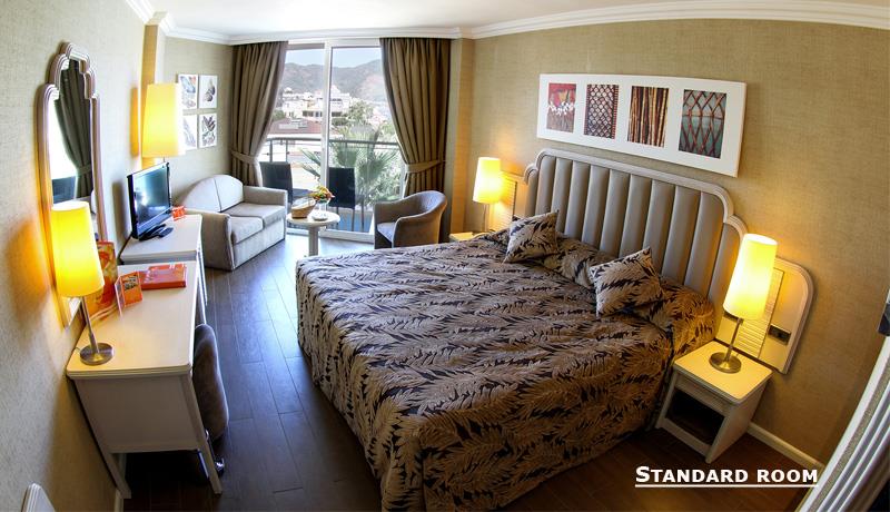 Hotel Elegance 5* (Marmaris, Turska)- na peščanoj plaži sa platformom za sunčanje i kupanje, 3 km od grada Marmaris, 95 km od aerodroma Dalaman. Hotel ima glavni restoran, a la carte restoran, šest barova, dva otvorena bazena, tursko kupatilo, parno kupatilo, sauna, đakuzi, masaža, animacija, prodavnice. Stoni tenis, pikado, bilijar, stoni fudbal, škola ronjenja, fitnes, sportovi na vodi. Bazen za decu, dečiji klub, igralište, animacija, igraonica.