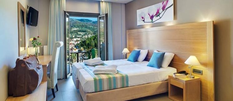 Sadržaj soba: Standardne sobe – imaju oko 20m2. Dekorisane sa ukusom, i sa predivnim pogledom na more, namenjene za 2 – 4 osobe maksimalno. Imaju francuski krevet ili dva singl kreveta.