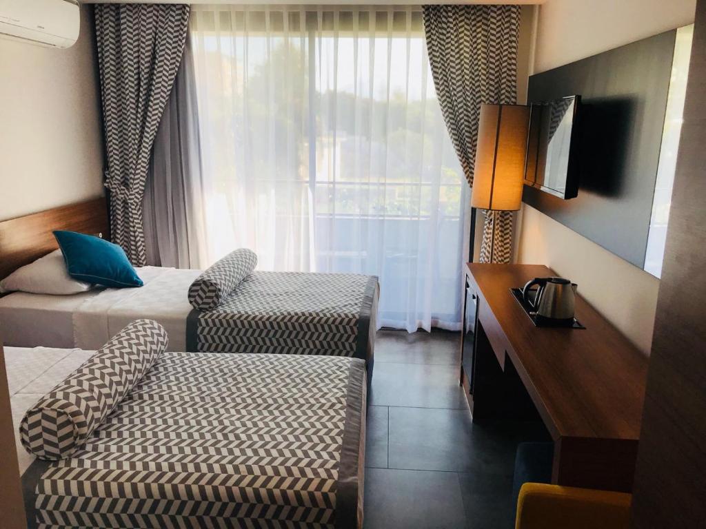 Sve sobe su raspoređene u dve zgrade (sa bočnim ili direktnim pogledom na more) i sve imaju kupatilo, fen, klimu, TV, mini bar, telefon,balkon