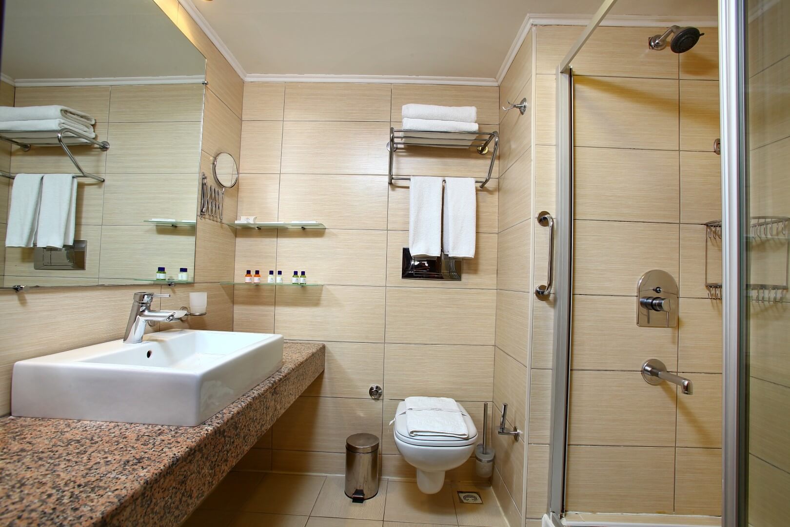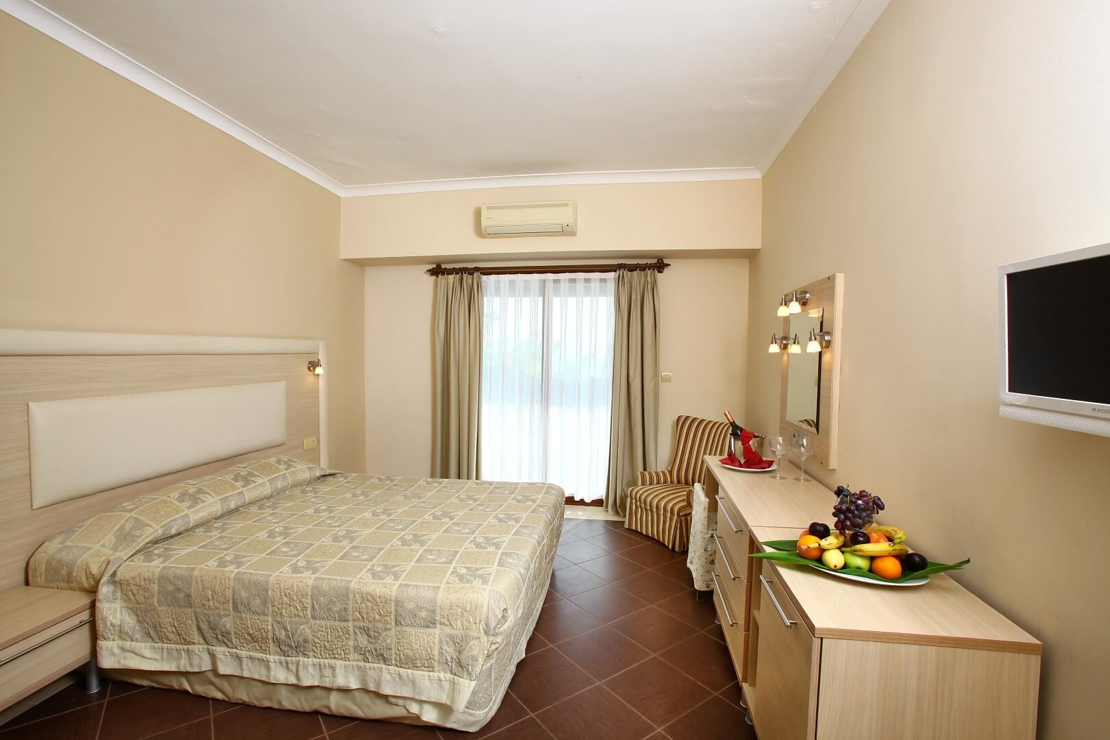 Sobe: Hotel broji ukupno 184 standardne sobe, sa pogledom na more ili na kopno, površine su 22m² i namenjene su za max 3 odrasle osobe. Sve sobe poseduju kupatilo sa tušem, fen za sušenje kose, telefon, televizor, mini bar (prazan), sef (uz doplatu), individualni klima uređaj, balkon ili terasu.