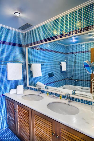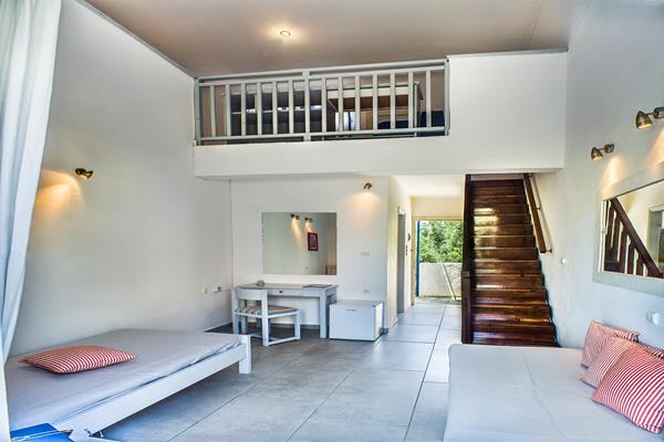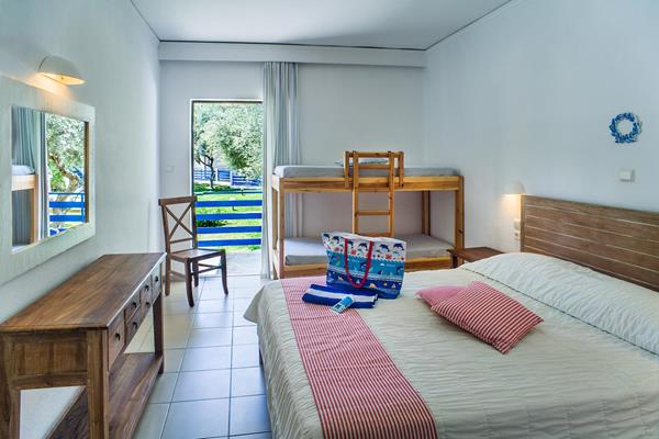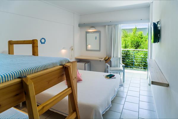 Sadržaj hotela: Hotel ima glavnu zgradu sa 96 soba I 3 apartmana, kao I 75 dodatnih soba podeljenih u 6 manjih dvospratnih zgrada. 11 od tih soba su vile (duplex apartmani sa unutrašnjim stepenicama, idealne za porodice). Sobe sa pogledom na more nalaze se samo u glavnoj zgradi. Sobe sa pogledom na baštu nalaze se ili u glavnoj zgradi ili u bungalovima. Porodične sobe nalaze se samo u bungalovima.