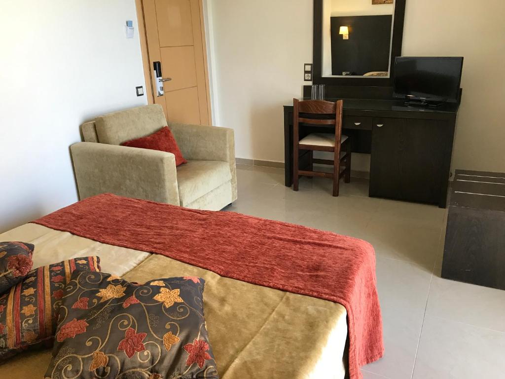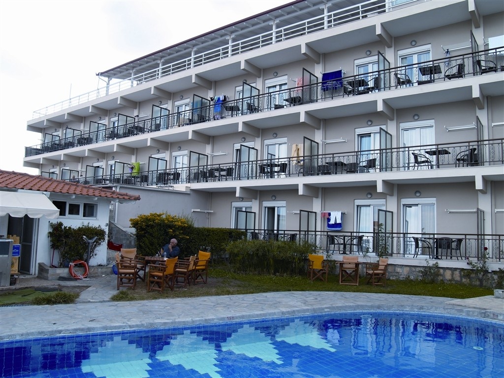Sadržaj hotela: Nudi veliki izbor modernih usluga i pogodnosti poput – 24h recepcija, restoran za sve obroke dana, A la carte restoran, dnevni boravak, internet (wi-fi) u javnim delovima hotela, bar na plaži, uživo zabava, bazen spoljašnji, bar na bazenu,disko, ležaljke na plaži, ležaljke na bazenu, suncobrani na plaži, suncobrani na bazenu, lift, mogućnost iznajmljivanja automobila/bicikla , stoni tenis, menjačnica, servis za pranje veša, teretana, sef, masaža uz doplatu, organizovanje grčke večeri…