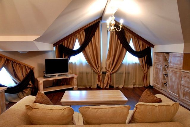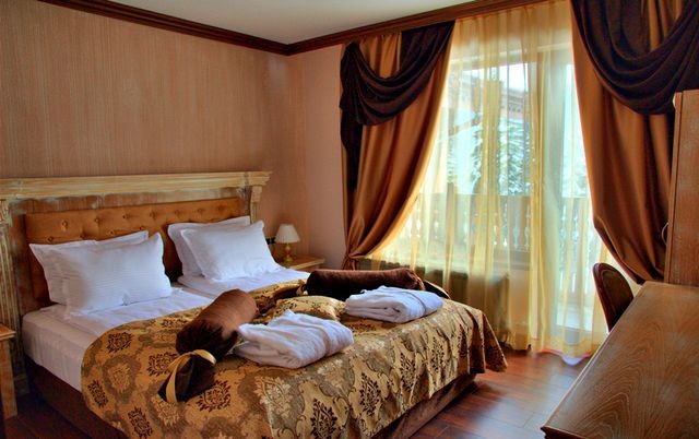 Smeštaj: Gostima hotela je na raspolaganju smeštaj u 39 dvokrevetnih sobama i 5 studija, kao i u 6 jednosobnih apartmana i 3 dvosobna apartmana. Hotel se satoji iz dva bloka, povezana toplom vezom. U jednom bloku nalaze se studiji i apartmani, u drugom bloku nalaze se standardne sobe.