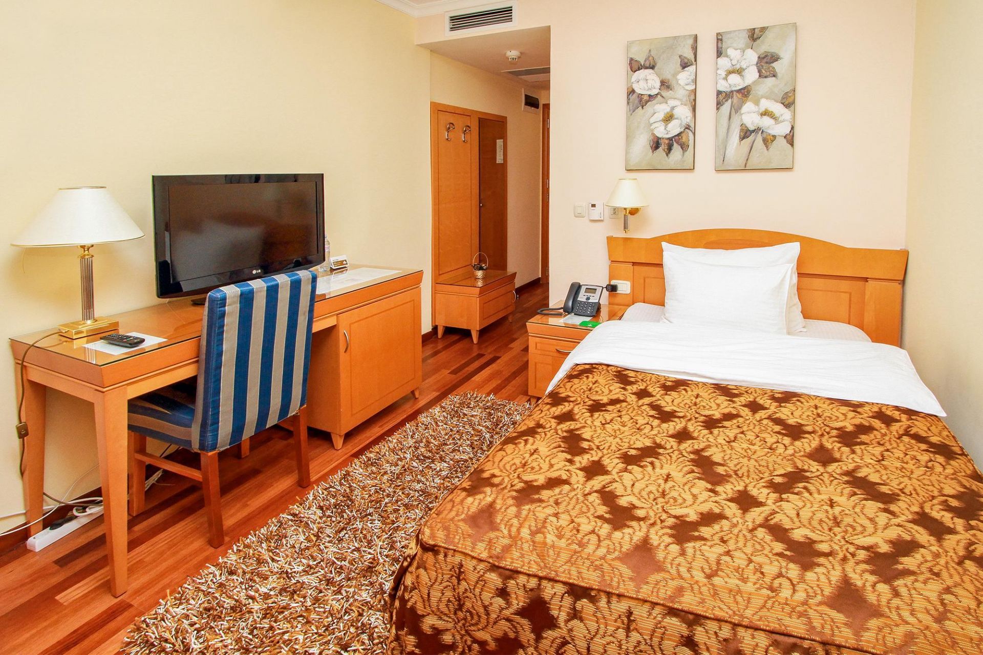 Hotel raspolaže sa 165 smeštajnih jedinica (kapaciteta do 500 gostiju), raspoređenih u jednokrevetne, dvokrevetne, superior sobe i apartmane. Sve sobe su opremljene modernim nameštajem, poseduju centralnu klimatizaciju, mini bar, sef, besplatan wireless internet, LCD TV i Voip telefone.