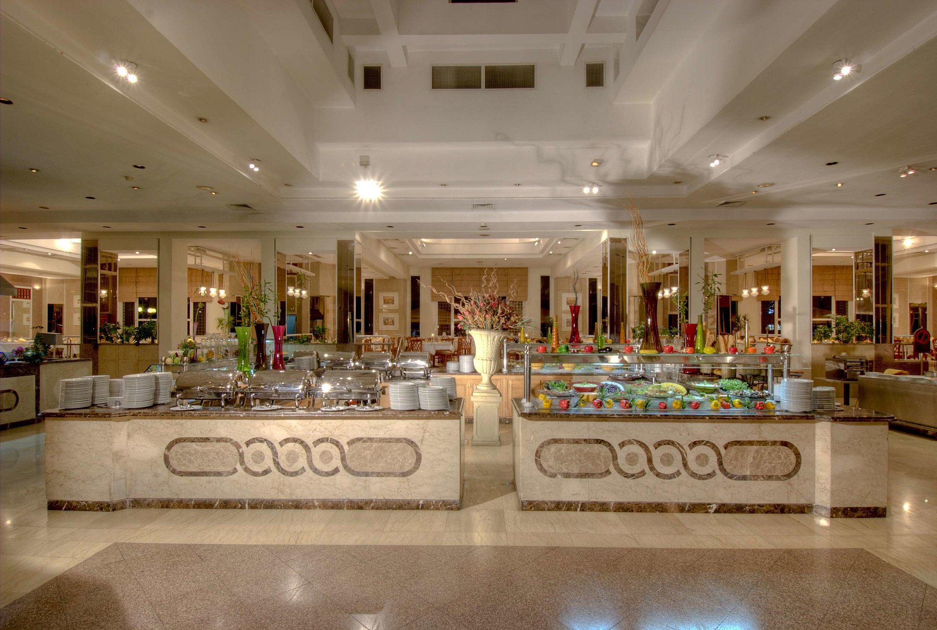 Hotelski sadržaj: Dva spoljašnja bazena, dečji bazen, tobogani, besplatne ležaljke i suncobrani, džakuzi, dečji klub, animacija za decu, šatl bus do Naama Bay-a (vožnja je besplatna), spa centar (sauna, parno kupatilo), usluge masaže (uz doplate), glavni restoran, a la carte restorani kineske, tajlandske i libanske kuhinje, suši bar, snek bar, roštilj (obroci u nekim a la carte restoranima podležu doplati), nekoliko barova, šiša bar, usluge pranja i peglanja veša (uz doplatu), Wi-Fi (uz doplatu), tenis (uz doplatu). Iza resorta nalaze se ogromni golf tereni, a korišćenje podleže doplati.