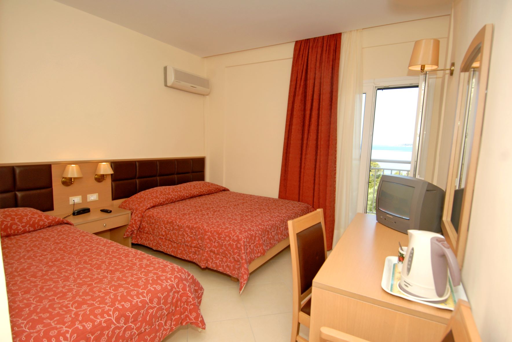 Nudi sobe koje gledaju na bazen ili na more, koje se nalaze u glavnoj zgradi ili okolnim zgradama. Sve sobe su klimatizovane, sa satelitskim kanalima, radnim stolom, imaju električno kuvalo i frižider.
