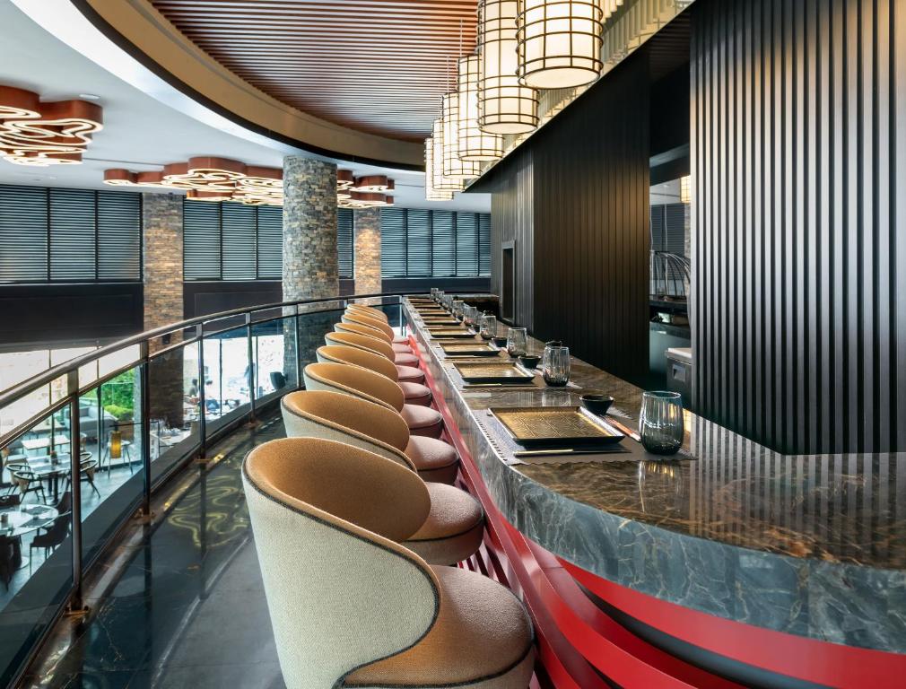 U okviru ovog smeštajnog objekta nalazi se nekoliko restorana fine kuhinje. Tokom večeri, gosti mogu da uživaju u jelima 9 različitih kuhinja u glavnom restoranu, koji radi non-stop i nudi à-la-carte uslugu. Za opuštenije obroke, gosti u restoranu Teppanyaki mogu da probaju ukusno meso i sveže plodove mora, koji se služe uz koktele i vino. Objekat Pablo Esco Bar nudi stare viskije i vrhunske, ručno pravljene cigare.