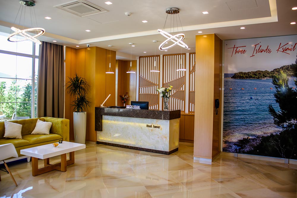 Hotel Luxury 4*, Ksamil ( Albania)- Smešten na nekih 150 m od Rajske plaže, hotel Lukury nalazi se u Ksamilu, na samo 5 km od ulaza u Nacionalni park Butrint koji je pod zaštitom UNESCO-a. Hotel ima bar i restoran sa prostranom terasom. Dostupni su besplatni WiFi i besplatan privatni parking. Sve sobe su klimatizovane i imaju balkon, od kojih neke imaju pogled na more. Sadržaji uključuju TV ravnog ekrana sa kablovskim i satelitskim kanalima, kao i mini bar, sef i radni sto. Svaka jedinica ima sopstveno kupatilo sa tušem, fenom za kosu i besplatnim toaletnim priborom. Restoran na licu mesta služi mediteranske i lokalne specijalitete. Međunarodni aerodrom Krf udaljen je nekih 50 km i do njega se može stići trajektom iz luke Saranda, koja je 15 km udaljena od Ksamila.