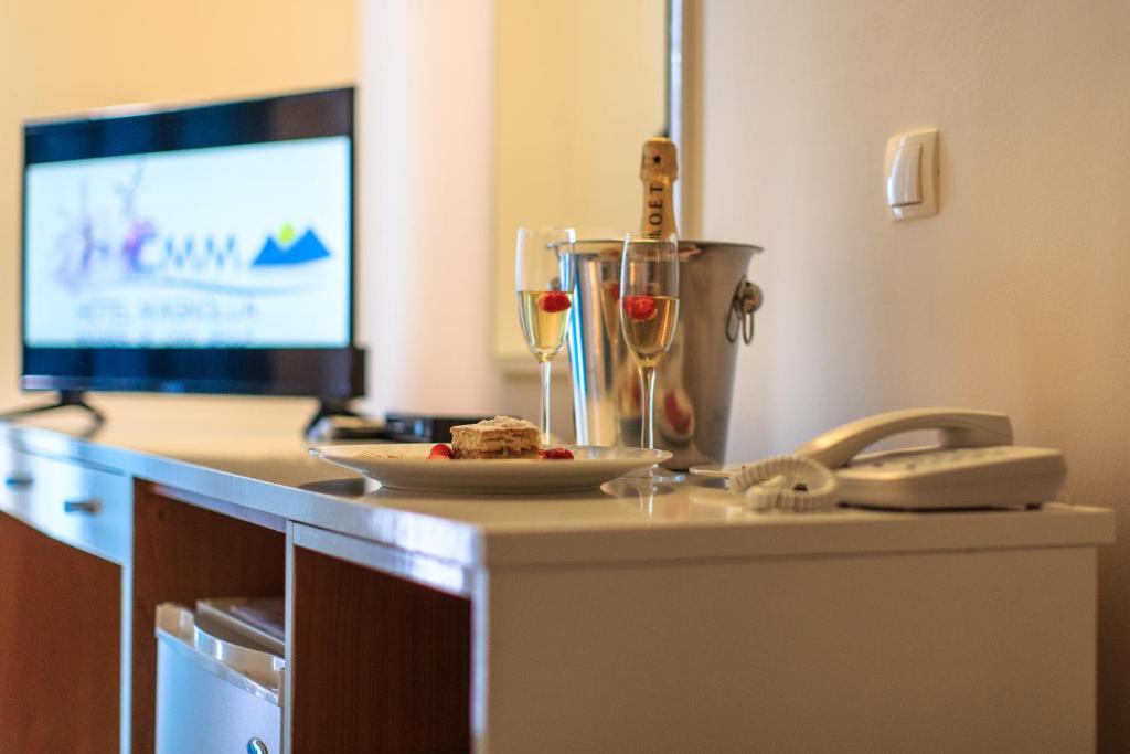 - Junior Suit - Ovaj apartman sastoji se iz dve zasebne prostorije. Predvidjen je za četiri osobe. Sa balkona se pruža pogled na bazen i planinu.