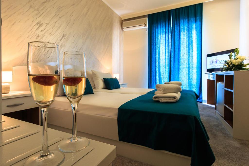 - Dvokrevetna soba - namenjena za dve osobe, veličine 15m2. Prijatnog i udobnog enterijera sa balkonom koji ima pogled na more. Sadržaj sobe: telefon, klima-uređaj, fen za kosu, balkon, frižider