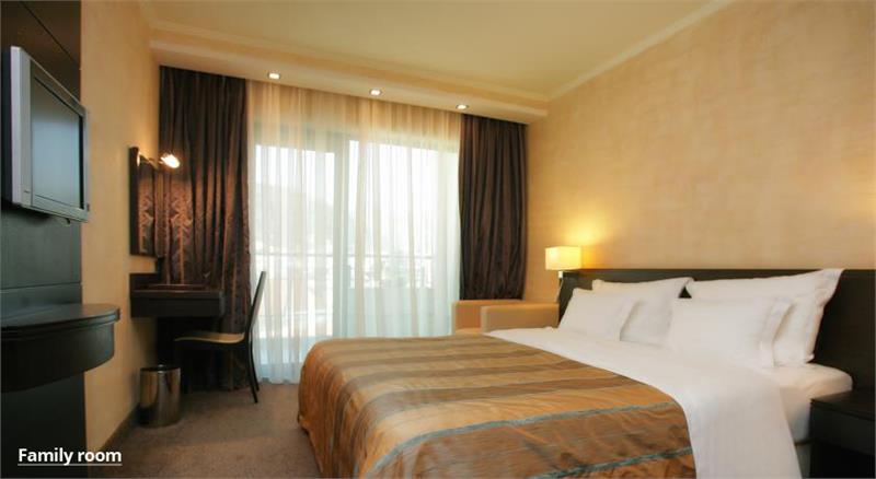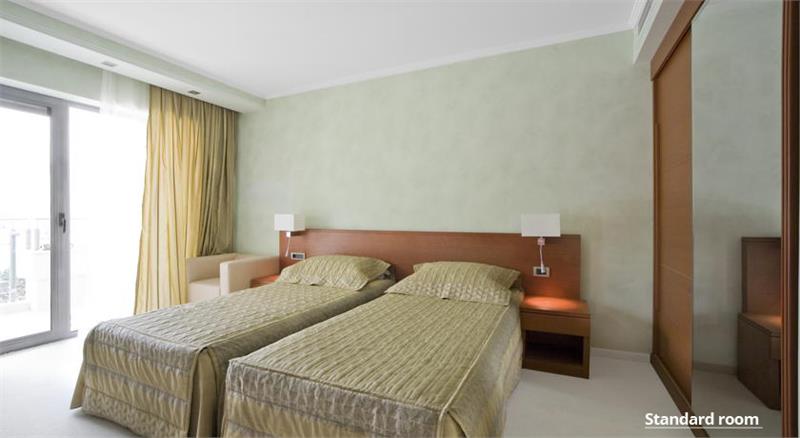Smeštaj: Hotel poseduje pet različitih vrsta soba: Standardne, Studio, Family, sobe za osobe sa ograničenim sposobnostima i sobe kategorije Lux. Veći broj soba ima jedinstven pogled na more. Sve sobe su opremljene: klima uređajem, sefom, telefonom, mini-barom, fenom, televizorom(LCD); takođe je predviđena mogućnost korišćenja Pay TV. Svaka soba ima terasu ili balkon, kupatilo sa tuš kabinom i kadom, a radi prijatnosti i udobnosti gostima su na raspolaganju papuče i bade mantil. Predviđeno je svakodnevno raspremanje soba i večernji servis.