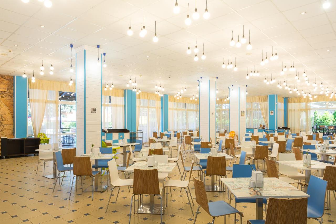 Smeštaj: Sve sobe su klimatizovane i sadrže :TV, telefon, Wi-Fi internet, frižider, kupatilo sa tušem, fen , balkon. Sobe mogu imati ili sofu ili fotelju na razvlačenje kao dodatni ležaj, kao i pogled na park ili na more.