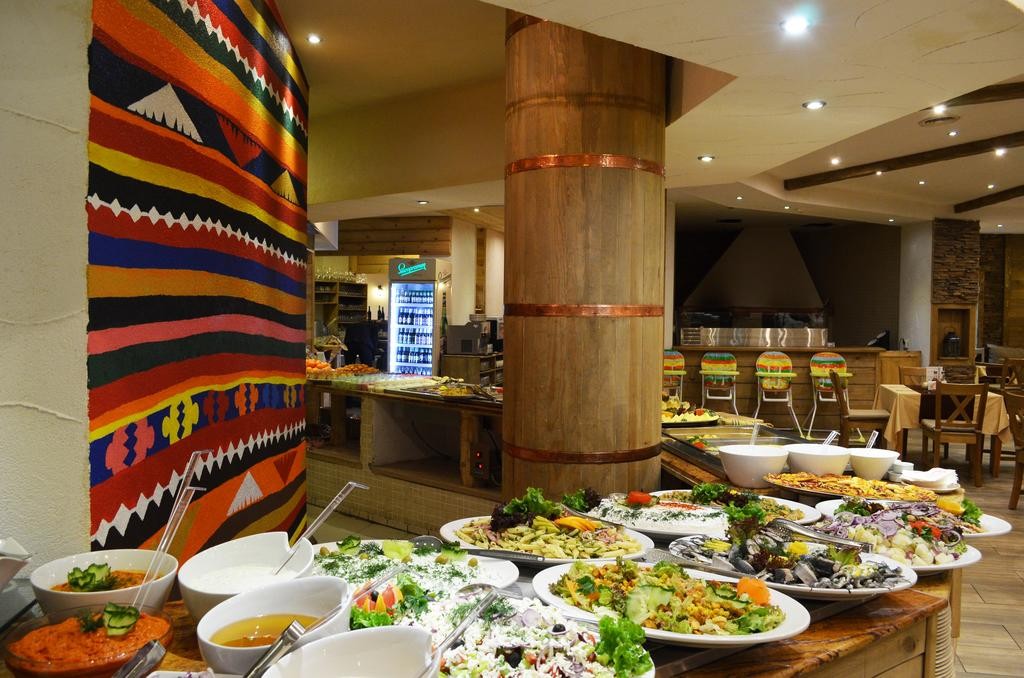 Hotel ima 260 komforno opremljenih soba. Na raspolaganju su SPA zona sa zatvorenim bazenom, sa dječjim dijelom, glavni restoran, tematski restoran, Ski bar, lobbi bar i Vitamin bar (SPA). Na raspolaganju ima sled usluge i pogodnosti poput profesionalnog animacionog programa za decu i odrasle, igralište, sale za zabavu, igraonice, frizer, sala za konferencije i sastanke, skijašnicu, škola skijanja, spoljni parking i podzemna garaža, Wi-Fi u celom hotelu..