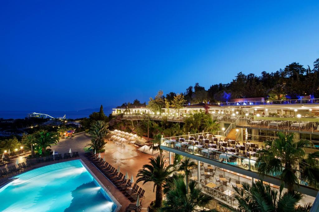 Hotel Pine Bay Holiday Resort Kusadasi, (Turska). Ovaj resort nalazi se u mestu Kusadası, u zalivu Camlimani, a potpuno je obnovljen 2014. godine. Obuhvata privatnu plažu i marinu, 3 otvorena bazena, unutrasnji bazen, vodeni park s 5 vodenih tobogana za odrasle i 2 za decu, veliki spa centar sa 4 bazena za decu. Gosti resorta Pine Bay mogu besplatno koristiti privatan parking ležaljke i suncobrane na plazi .