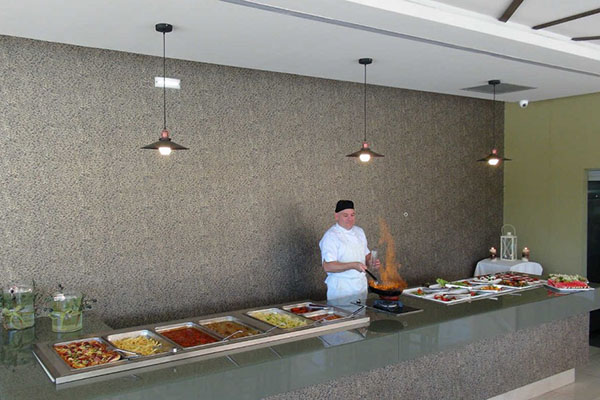 Usluga: Polupansion, doručak i večera. Obroci se služe po principu švedskog stola – samopolusživanje u restoranu Olive Garden koji se nalazi u sklopu hotela.