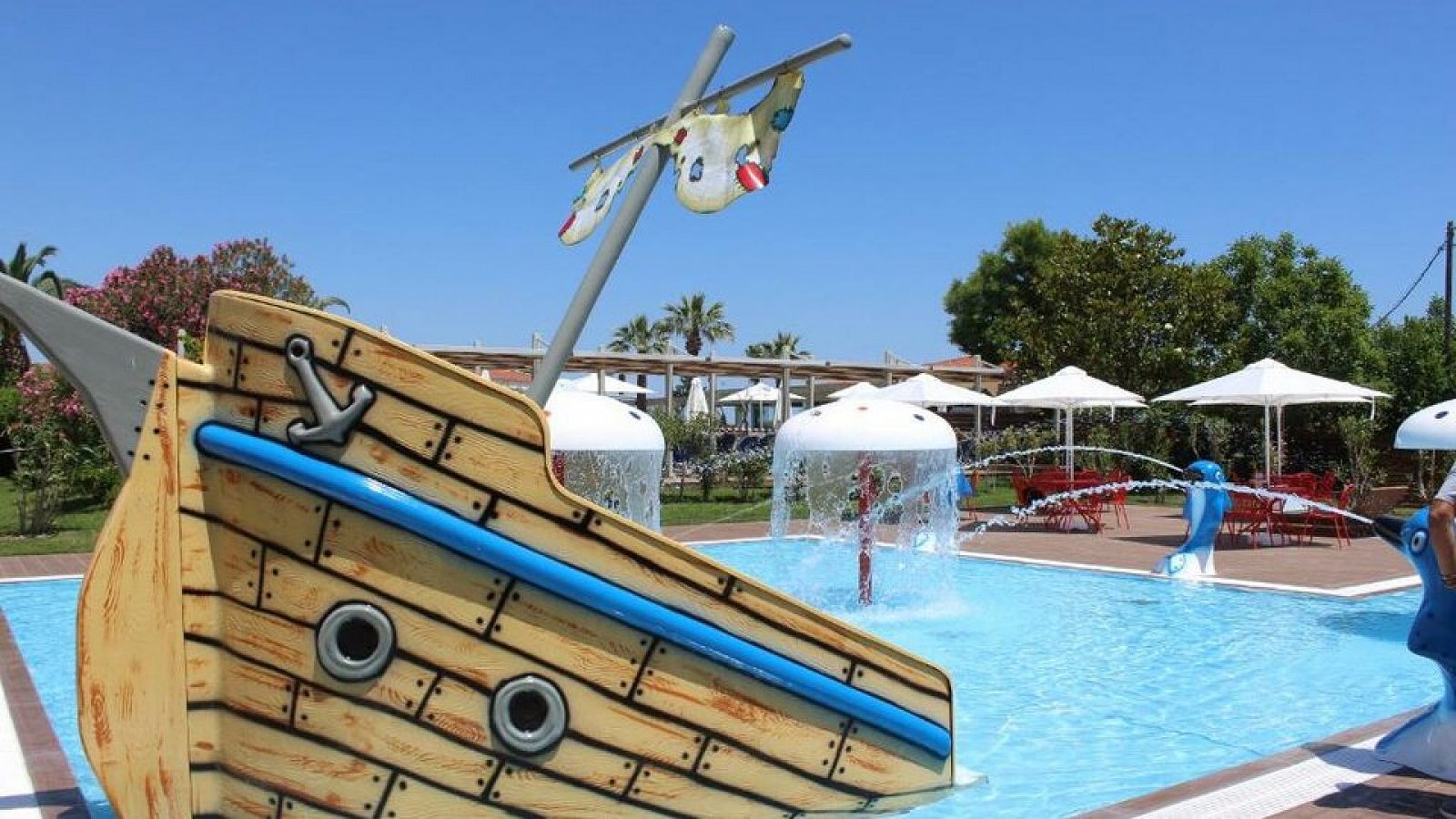 SADRŽAJ: Recepcija, glavni restoran sa mediteranskom i internacionalnom kuhinjom, a la carte restoran, lobby bar, bar pored bazena, bar na plaži, spoljašnji bazen sa odvojenim dečjim bazenom, spa i wellness centar sa saunom, parnim kupatilom i masažama (doplaćuje se), fitnes centar, dečje igralište, mini klub za decu, besplatan Wi-Fi u zajedničkim prostorijama, parking, usluge pranja veša i hemijskog čišćenja (doplaćuje se), rent-a-car usluga (doplaćuje se), organizacija izleta (doplaćuje se), animacijski programi za decu i odrasle, sportski tereni (tenis, košarka, odbojka na pesku).