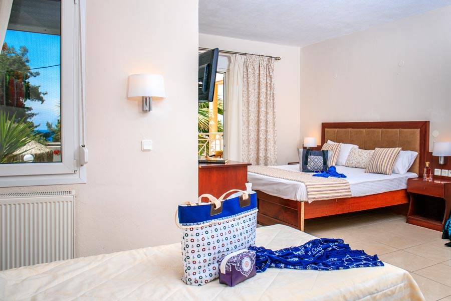 Sadržaj soba: Hotel poseduje standardne dvokrevetne, trokrevetne sobe, porodicne sobe i apartmane. Apartmani imaju odvojenu spavaću sobu sa dva standardna ili francuskim ležajem, i dnevnu sobu sa pomoćnim ležajem za jednu ili dve osobe. Sve smeštajne jedinice imaju balkon, SAT TV, kupatilo, radio, sef, mini bar, telefon, fen, klimu.