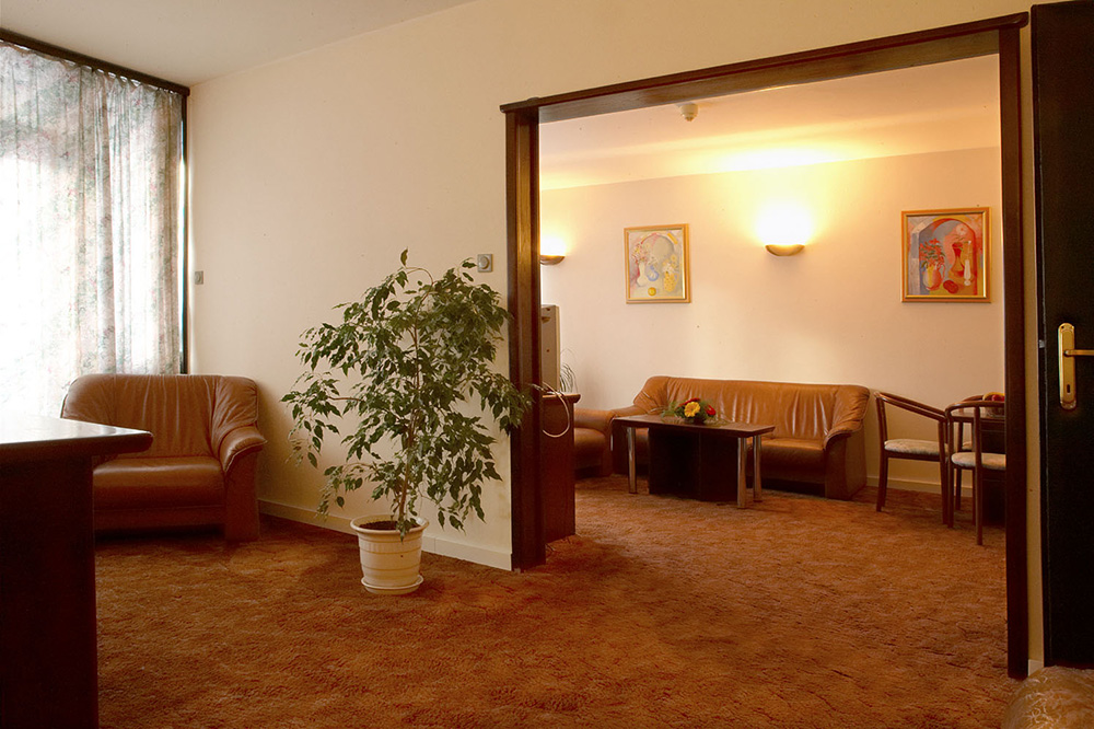 - Dvokrevetna soba za 2-3 osobe (2+1): francuski ili dva odvojena ležaja, fotelja na razvlačenje, SAT TV, telefon, minibar, kupatilo sa tuš kabinom ili kadom, fenbalkon.