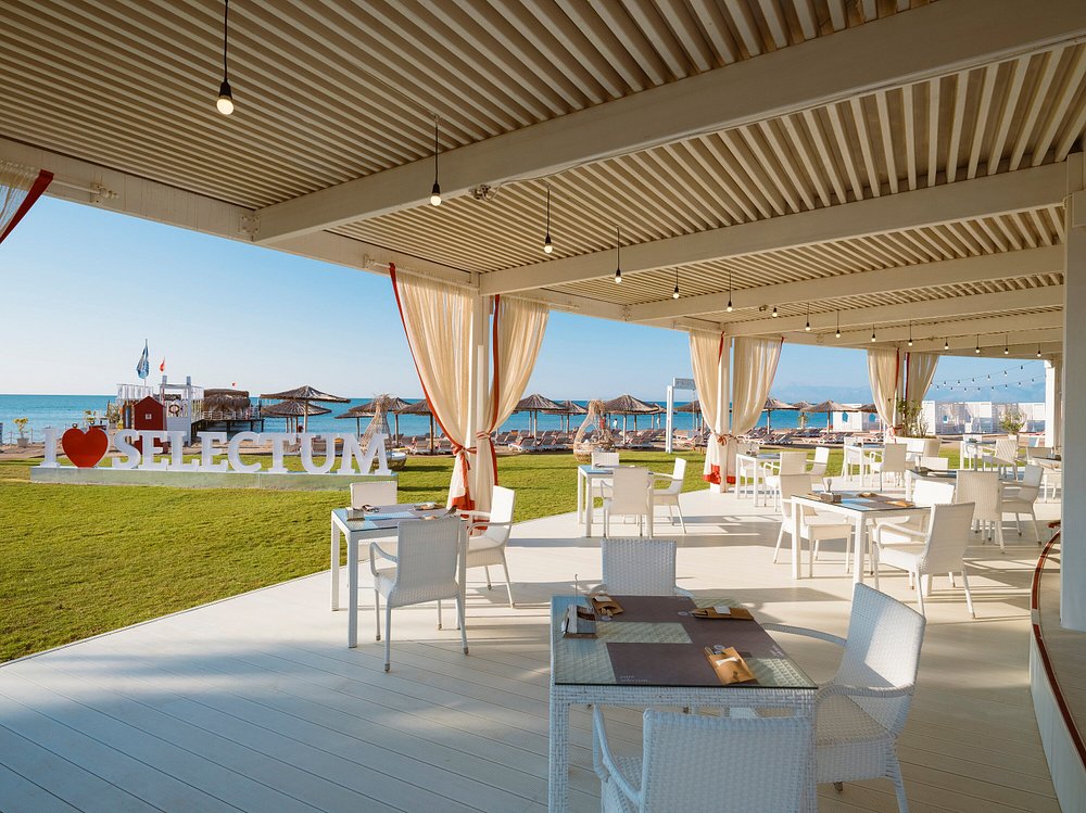 Hotel Selectum Luxury Resort u svom sastavu poseduje glavni zatvoreni i otvoreni restoran na bazi otvorenog bufea - samoposluživanje (švedski sto), barovi u okviru hotela, A'la Carte restorani (Sushi,Steak house,italijanska kuhinja, kuhinja sa morskim specijalitetima), snack bar, restoran pored bazena. Privatna plaža hotela je peščana. Privatni paviljoni na plaži su uz doplatu i rezervaciju unapred.