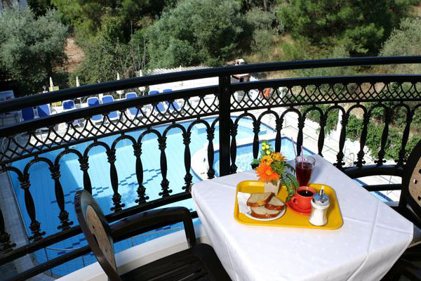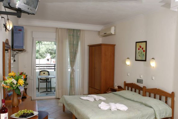 Hotel ima dvadesetak studija i jedan apartman. Terase su veoma prostrane sa udobnom garniturom za sedenje i uživanje. Apartman je takodje prostran i sastoji se iz dve prostorije. U jednoj se nalazi francuski ležaj, a u drugoj koja je od prve odvojena drvenim zastakljenim pregradnim zidom, sofa na rasklapanje za dve osobe. Naročito je interesantan balkon apartmana koji je zaista ogroman. Površina balkona je ista kao površina studija u nekim drugim vilama. Balkon gleda prema ulici, parkicu i parkingu, na njemu su ležaljke i suncobrani..