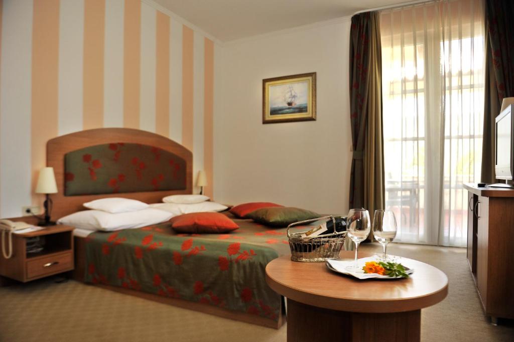 Na raspolaganju su: sopstvena plaža na obali mora, bazen u bašti sa temperiranom vodom, kao i wellness centar sa infra i finskom saunom, jaccuzzi-em, solarijumom i salama za masažu. Tri restorana u parku hotela u svojoj ponudi imaju mediteranska i međunarodna jela i pića. Pored toga gostima hotela stoje na raspolaganju i gril terasa, pivnica i sladoledarnica.